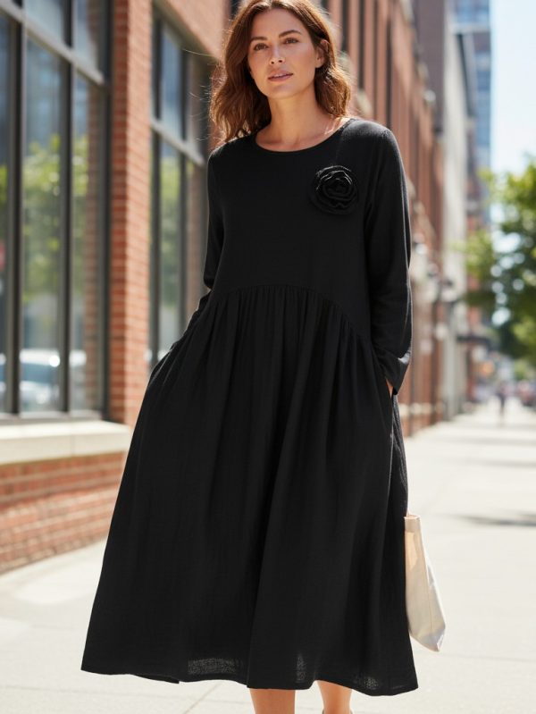 Rochie din raiat negru cu buzunare – lejeră și elegantă