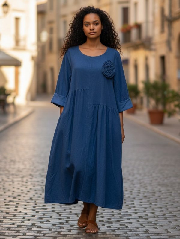 Rochia din raiat albastru este alegerea ideală pentru femeile care iubesc confortul fără a renunța la stil. Croiala amplă, ușor evazată, oferă libertate de mișcare și avantajează orice siluetă, iar materialul moale din raiat adaugă o notă caldă și plăcută la atingere.