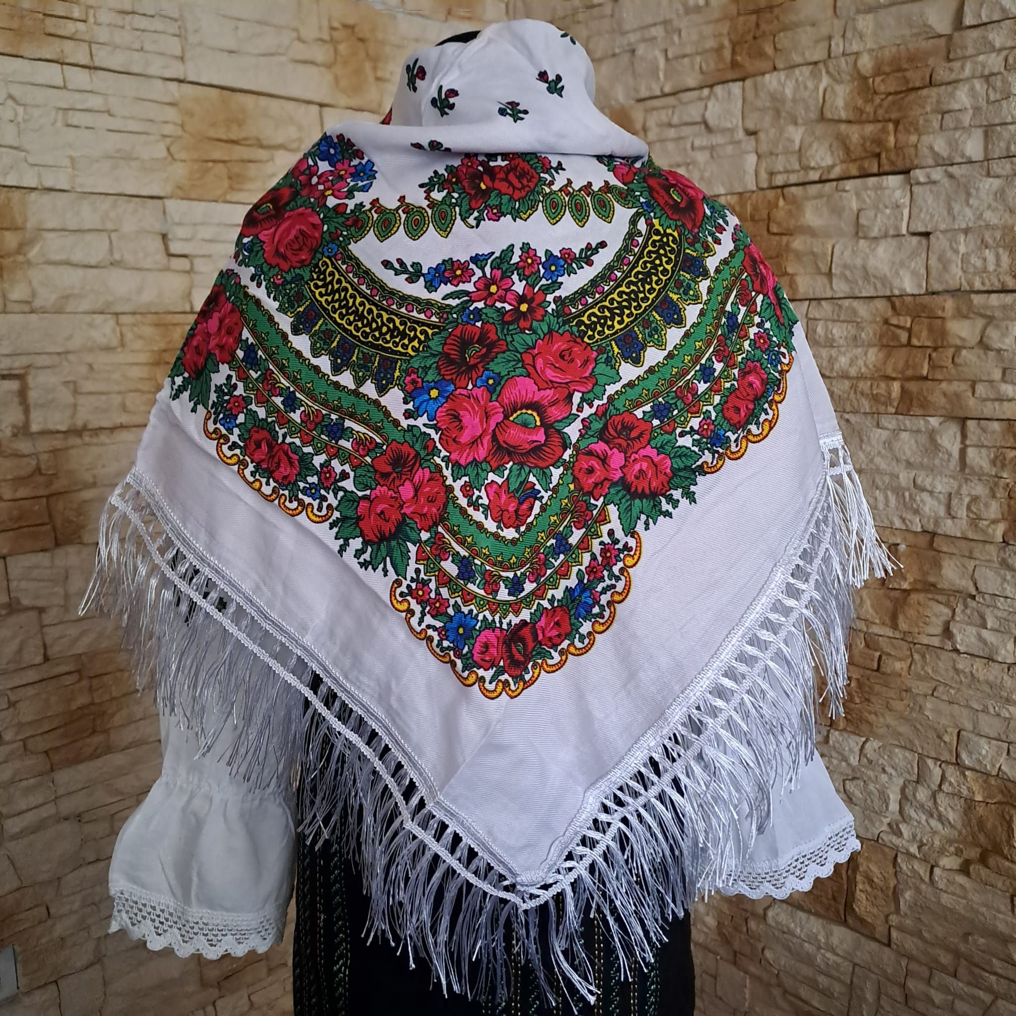 Acest batic tradițional, confecționat din material fin de cașmir, impresionează prin designul său autentic și detaliile bogate. Decorat cu motive florale vibrante și intricate, este un simbol al rafinamentului tradițional.