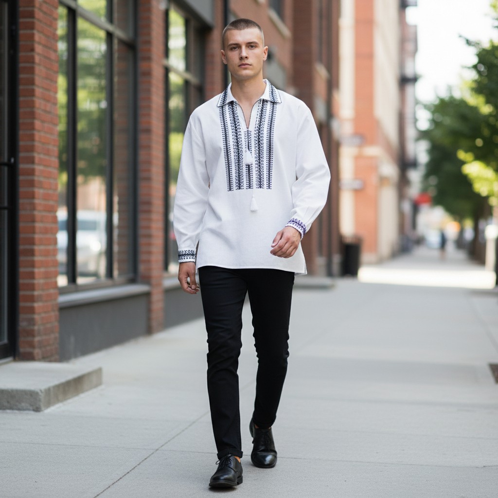 1. Croiala: Simplă și dreaptă, iile pentru bărbați sunt largi, oferind libertate de mișcare. Mânecile sunt de obicei lungi și se termină cu manșete ajustabile.