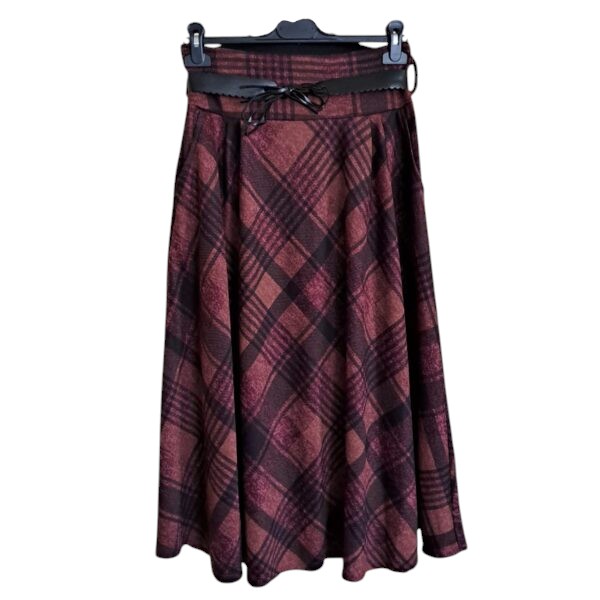Fustă în carouri cu buzunare și curea – talie reglabila.