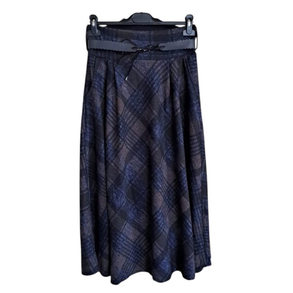 Fustă în carouri cu buzunare și curea – talie reglabila.
