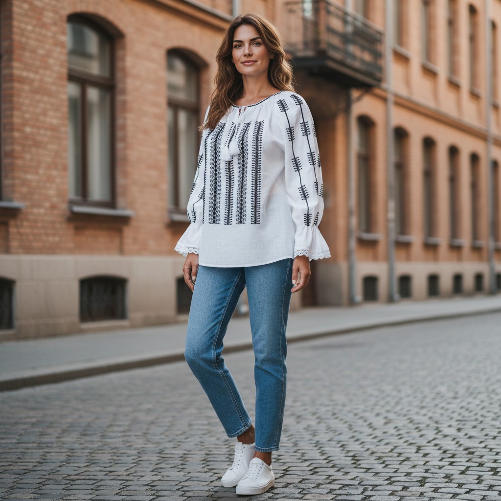 Fiecare simbol este brodat cu precizie la mașina de cusut ce reînvie motivele ancestrale care simbolizează prospețimea și bucuria. Materialul natural oferă un confort desăvârșit, iar designul aerisit o face ideală pentru orice sezon. Poart-o la evenimente tradiționale sau asorteaz-o cu o pereche de blugi pentru un look modern, dar plin de autenticitate.