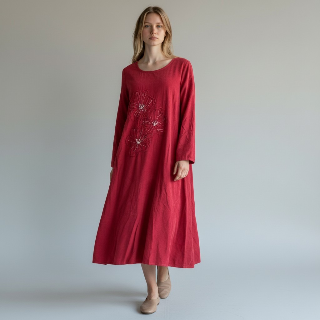 Rochie din raiat rosu caramiziu – lejeră și confortabilă